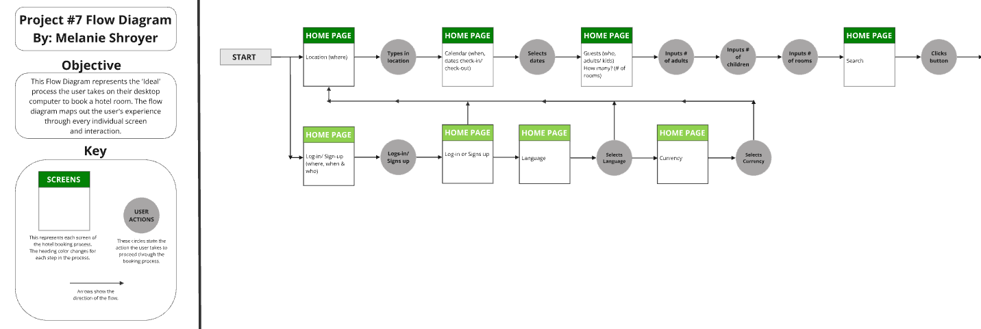 I initiated my design process by crafting a flow diagram to map out the ideal user journey and identify where the key pain points needed to be addressed.